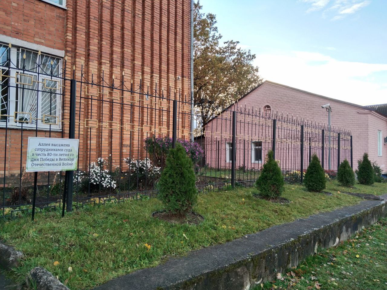 13.10.2025 состоялось открытие Аллеи, высаженной сотрудниками суда в честь восьмидесятилетия со Дня Победы Советского Союза в Великой Отечественной Войне 1941-1945 гг. Туи высажены здесь в память о тех, кто встал на защиту нашей страны от агрессии нацистской Германии и ее союзников. Выбор туи не случаен, ведь эти деревья долговечны, что позволит сохранить вечную память о героях, которые отдали свои жизни, чтобы будущие поколения могли спокойно вглядываться в мирное небо над головой. «Это наш способ выразить благодарность тем, кто ценой невероятных усилий подарил нам мир» – отметила председатель Монастырщинского районного суда Смоленской области Мильченко Е.А..