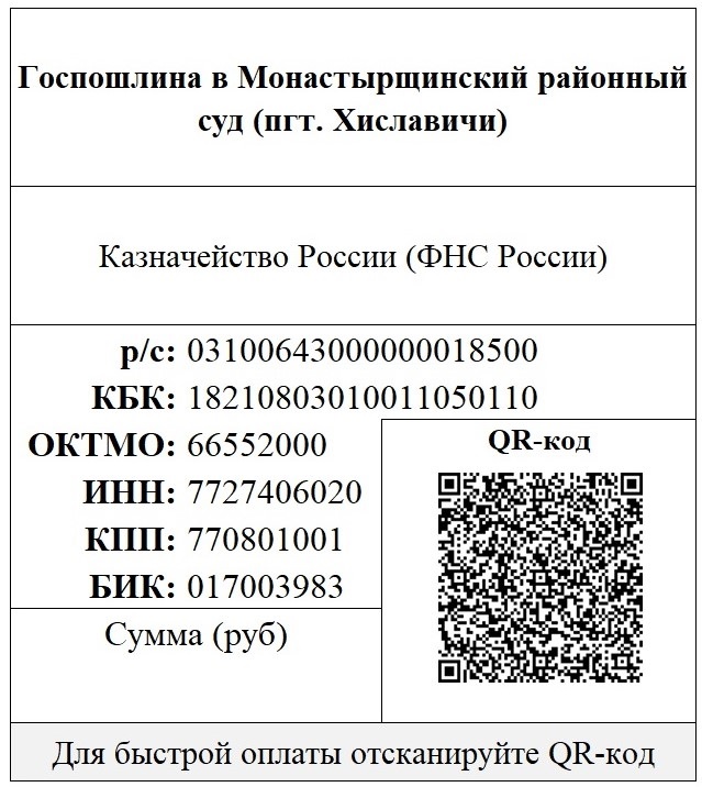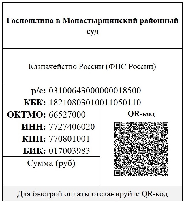 (государственная пошлина по делам, рассматриваемым в судах общей юрисдикции, мировыми судьями (за исключением Верховного Суда Российской Федерации) (государственная пошлина, уплачиваемая при обращении в суды)